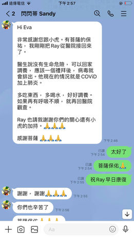 Ray 平常就是一位懂得積福的好人, 同時也是很好的理療師, 時常關心病人, 並且改善病人的病苦, 這次佛菩薩大加持, 也是 Sandy 跟 Ray 平常懂得布施的善緣呀。